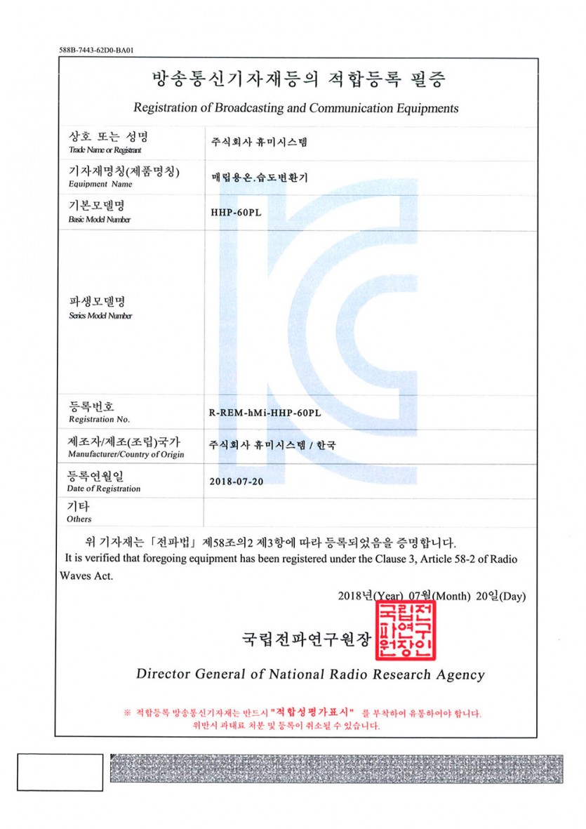 방송통신기자재등의 적합등록 필증